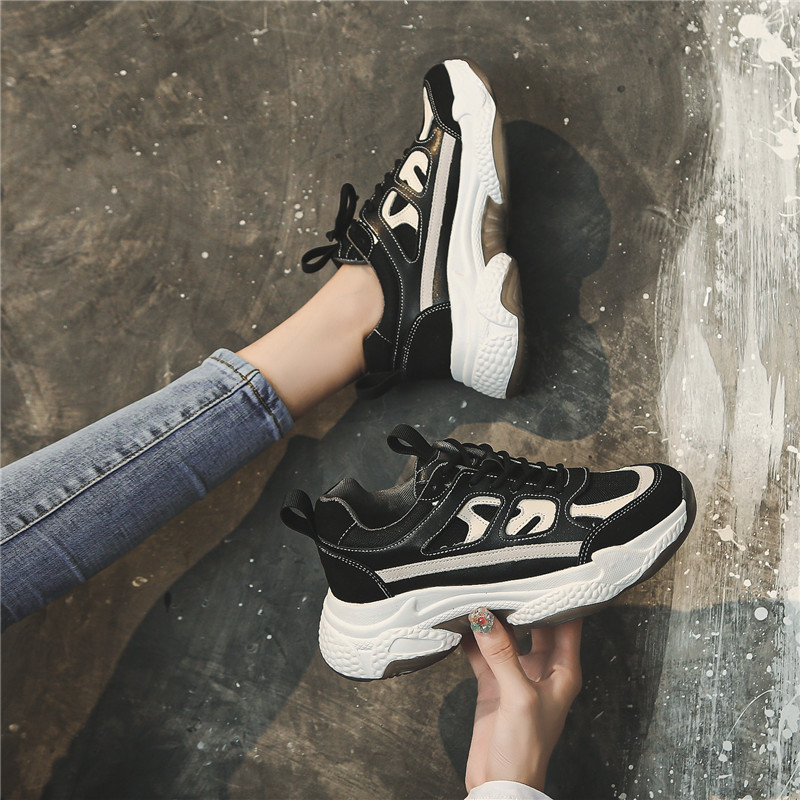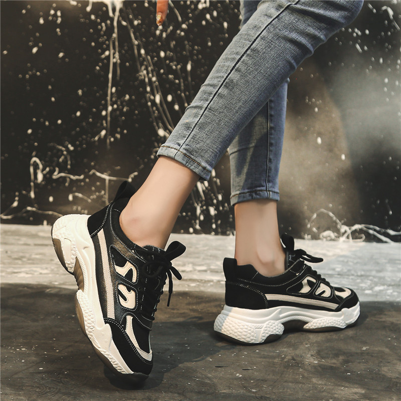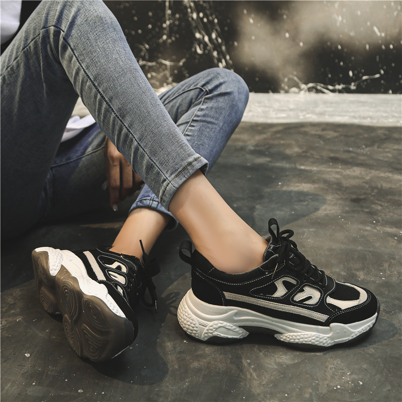 Old shoes female tide autumn new muffin color matching platform casual single shoes wild student sports shoes