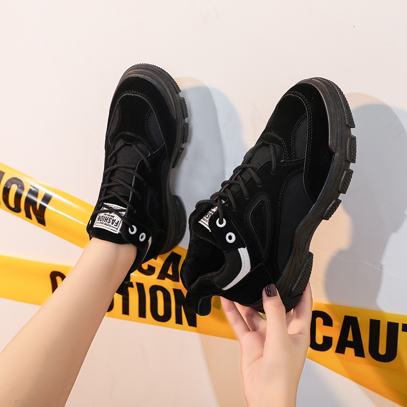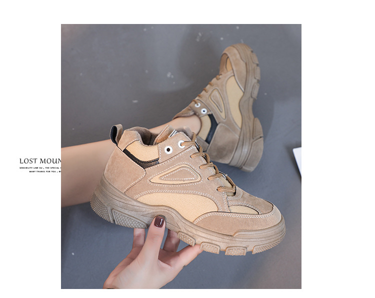 Old shoes women’s autumn and winter plus velvet outdoor sports shoes thick bottom retro lace fashion casual shoes with tide