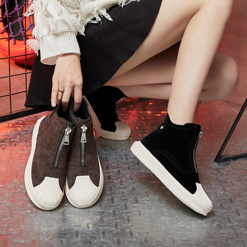 Shoes women’s new flat casual shoes wild student shell sports shoes winter plus velvet British women’s shoes