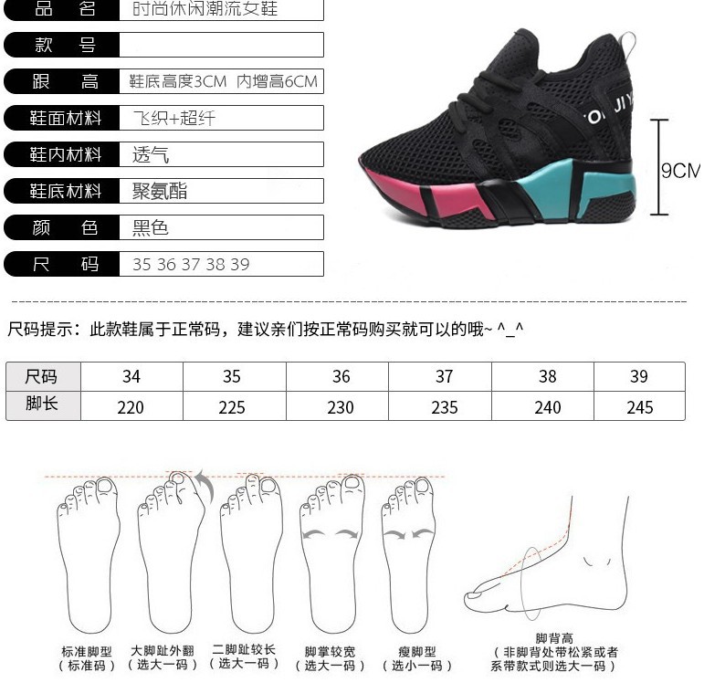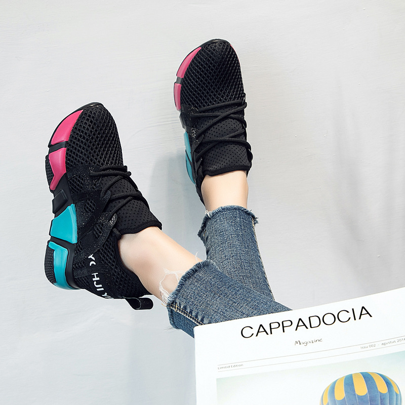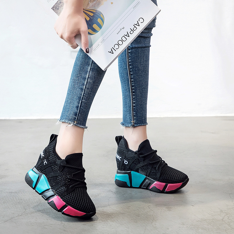 Sports shoes female new autumn summer color matching leisure Harajuku wild wedge with 10cm increase in women’s shoes