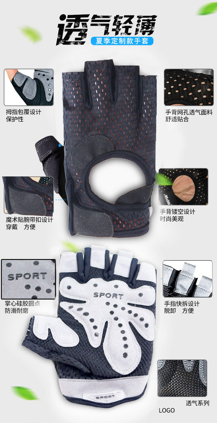 Fitness half finger gloves Men and women sports outdoor cycling skating dumbbell weightlifting exercise barbell half gloves